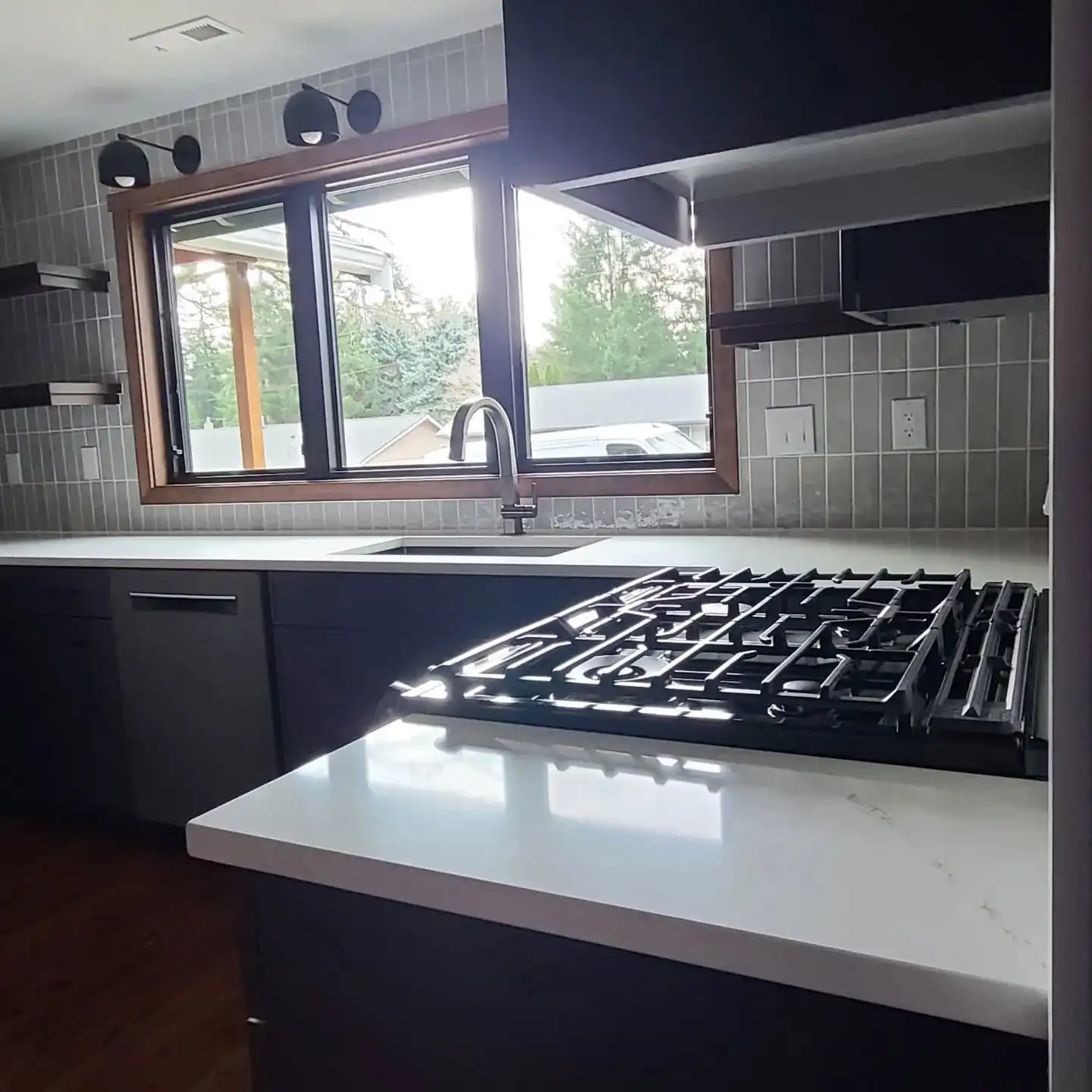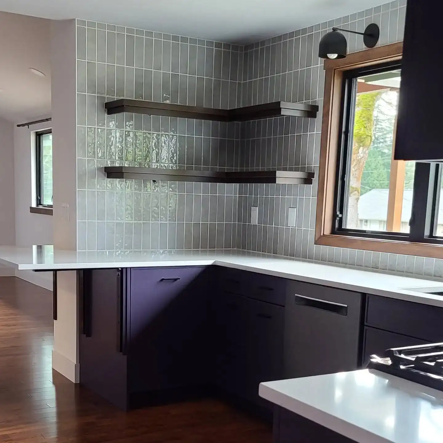 Кухня Алеста сочетает современный дизайн с тёплой атмосферой скандинавского уюта. Матовые фасады из МДФ в сливово-фиолетовом оттенке контрастируют с белой кварцевой столешницей, создавая лёгкий и чистый образ. Барная стойка добавляет функциональности, а надёжная фурнитура Hettich обеспечивает плавность и долговечность в использовании.