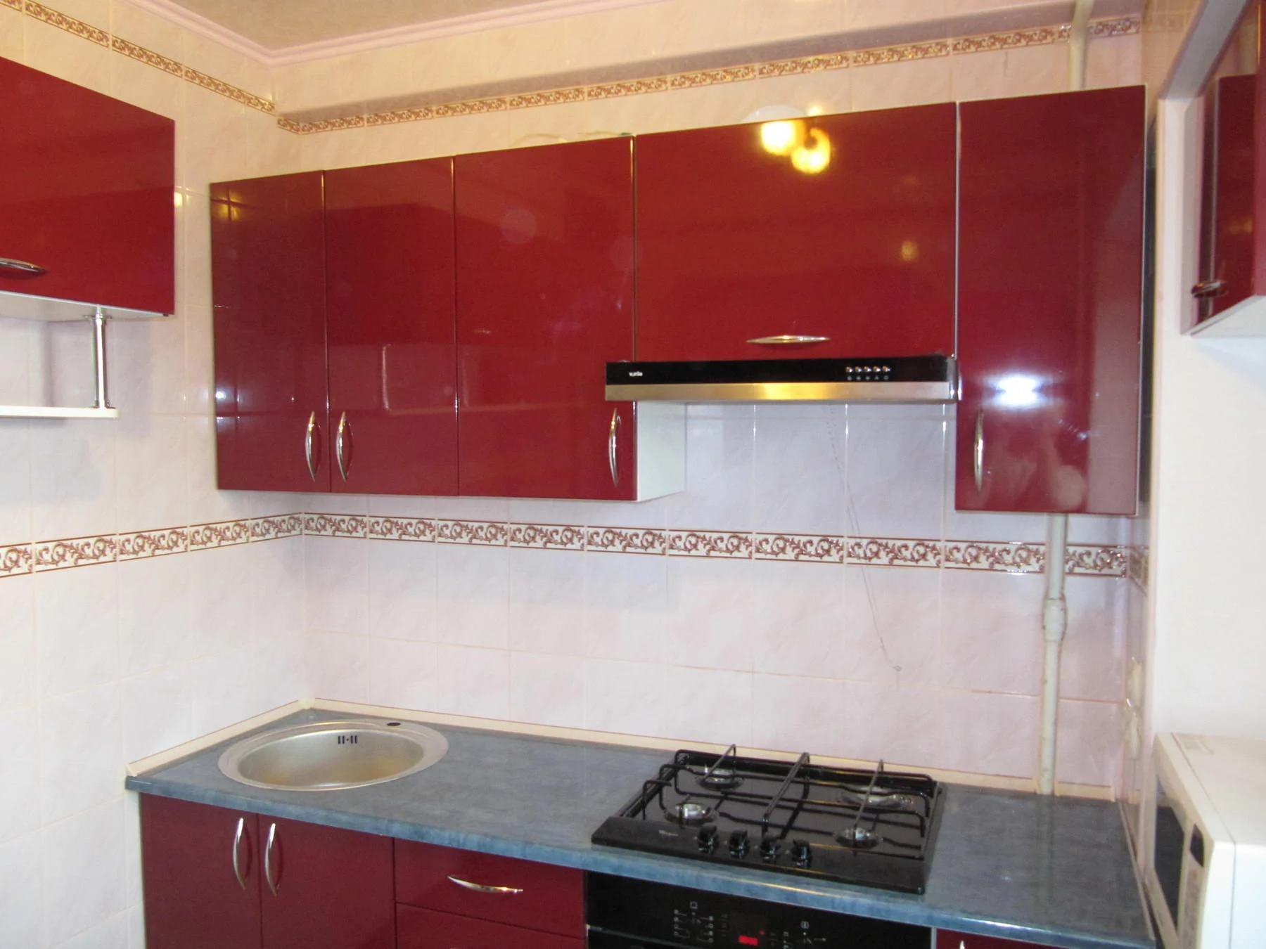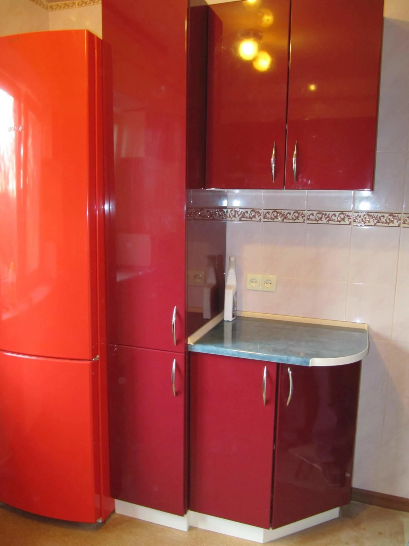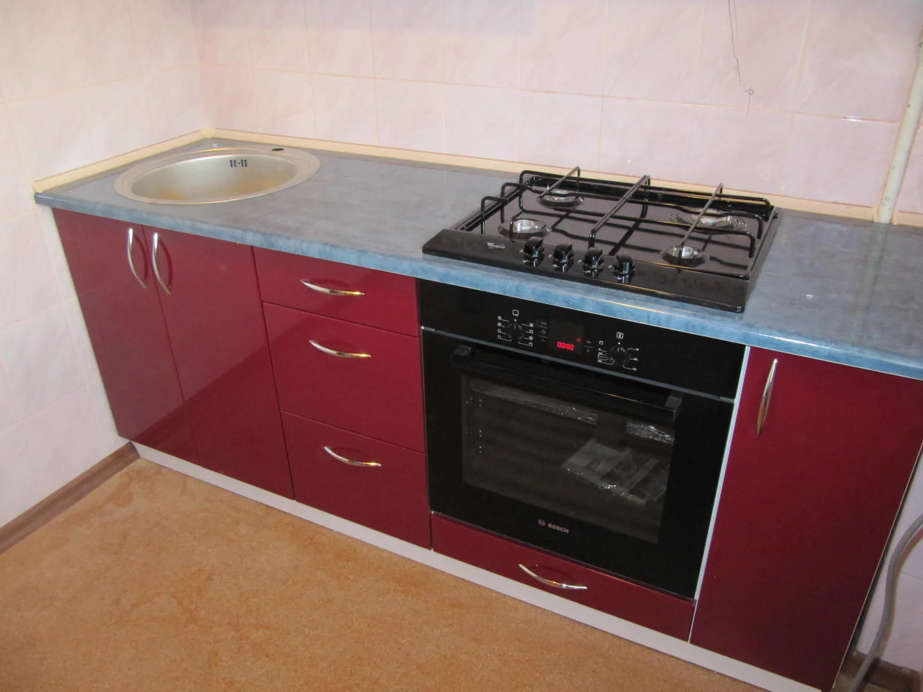 Кухня Алирия сочетает бордовый глянец фасадов с серой столешницей под камень. Прямая планировка делает её идеальной для небольших помещений, сохраняя при этом функциональность. Глянцевые поверхности визуально расширяют пространство, а фурнитура Blum гарантирует плавное открывание и долговечность конструкции.