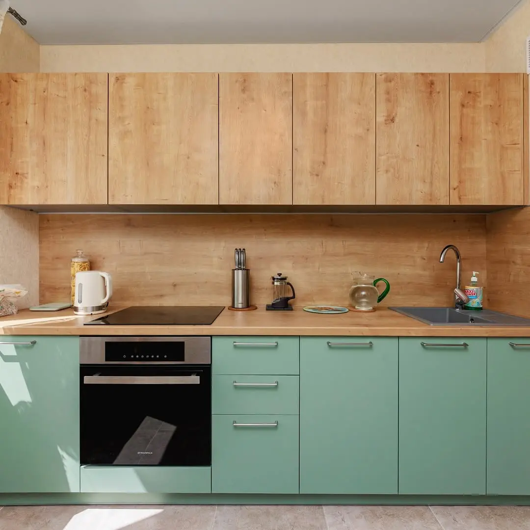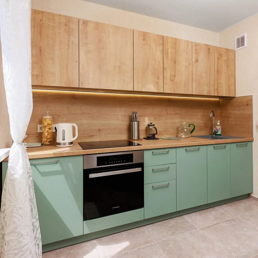 Кухня Боско — гармония природы и современного дизайна. Мягкий зелёный оттенок фасадов и натуральная текстура дерева создают атмосферу тепла и уюта. Продуманная эргономика, встроенная техника и качественная фурнитура Firmax обеспечивают удобство в повседневной эксплуатации. Эта кухня идеально подойдёт для тех, кто ценит стиль, экологичность и функциональность.