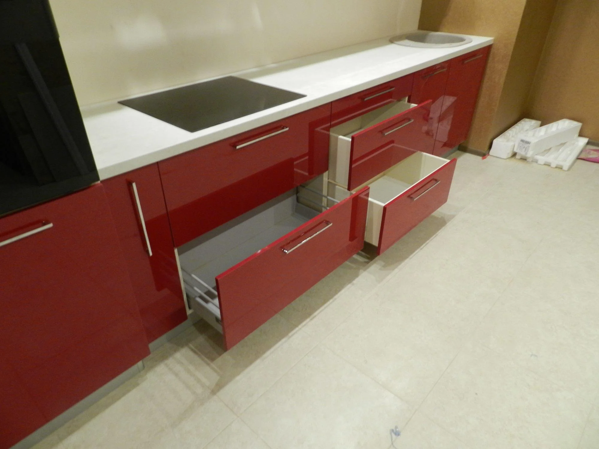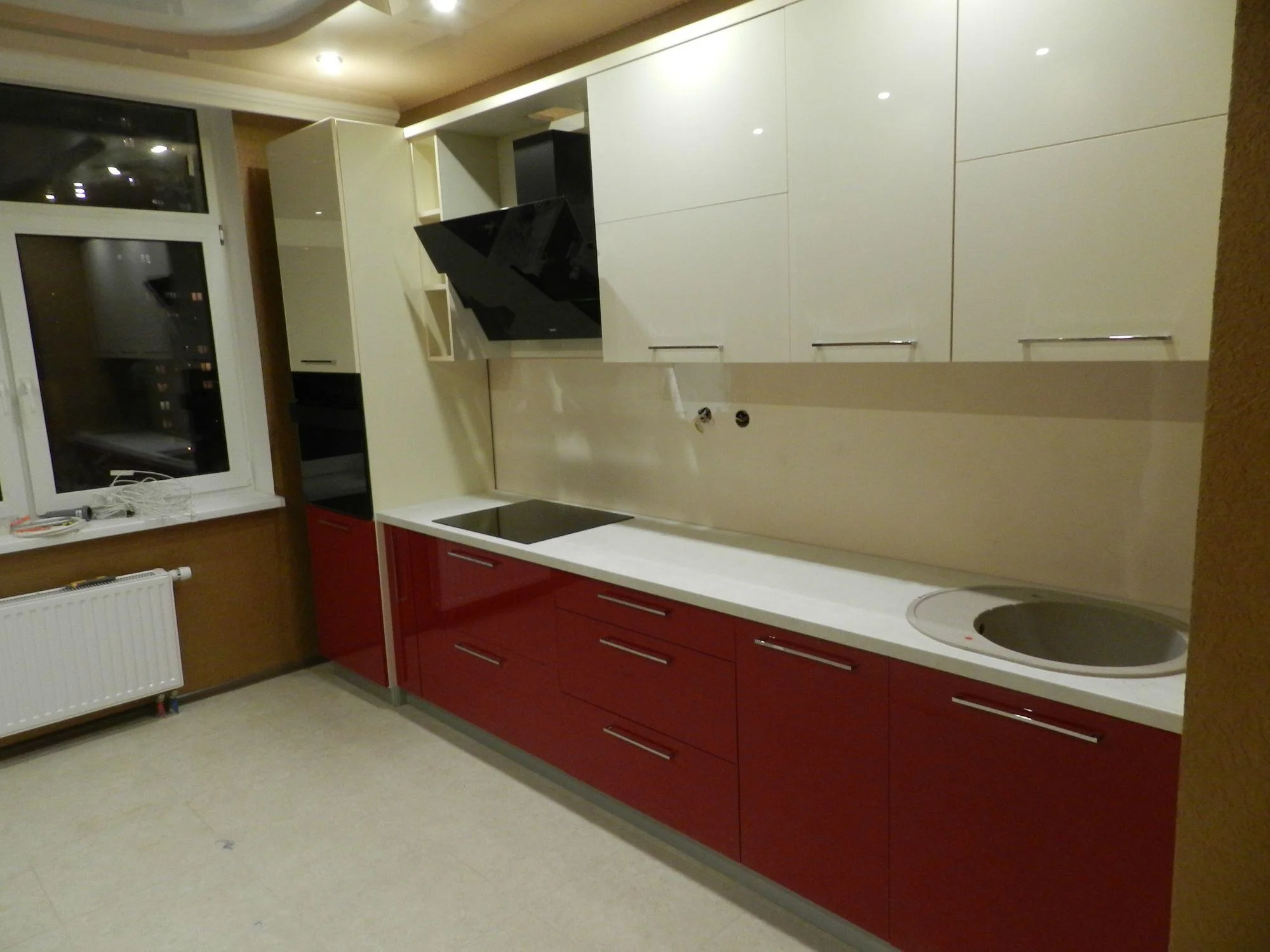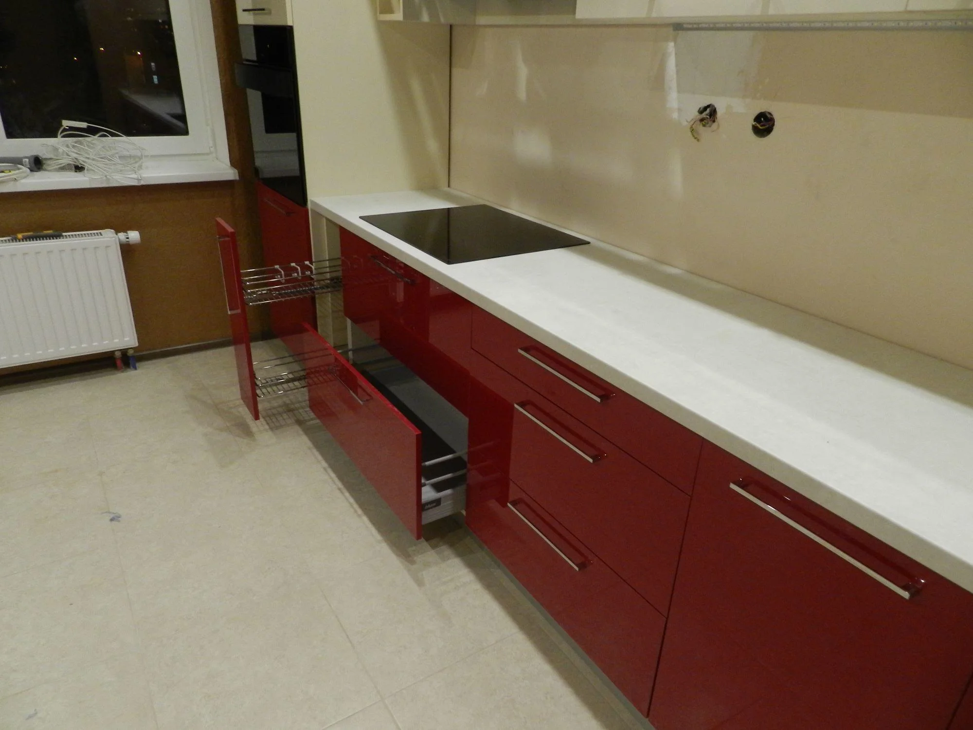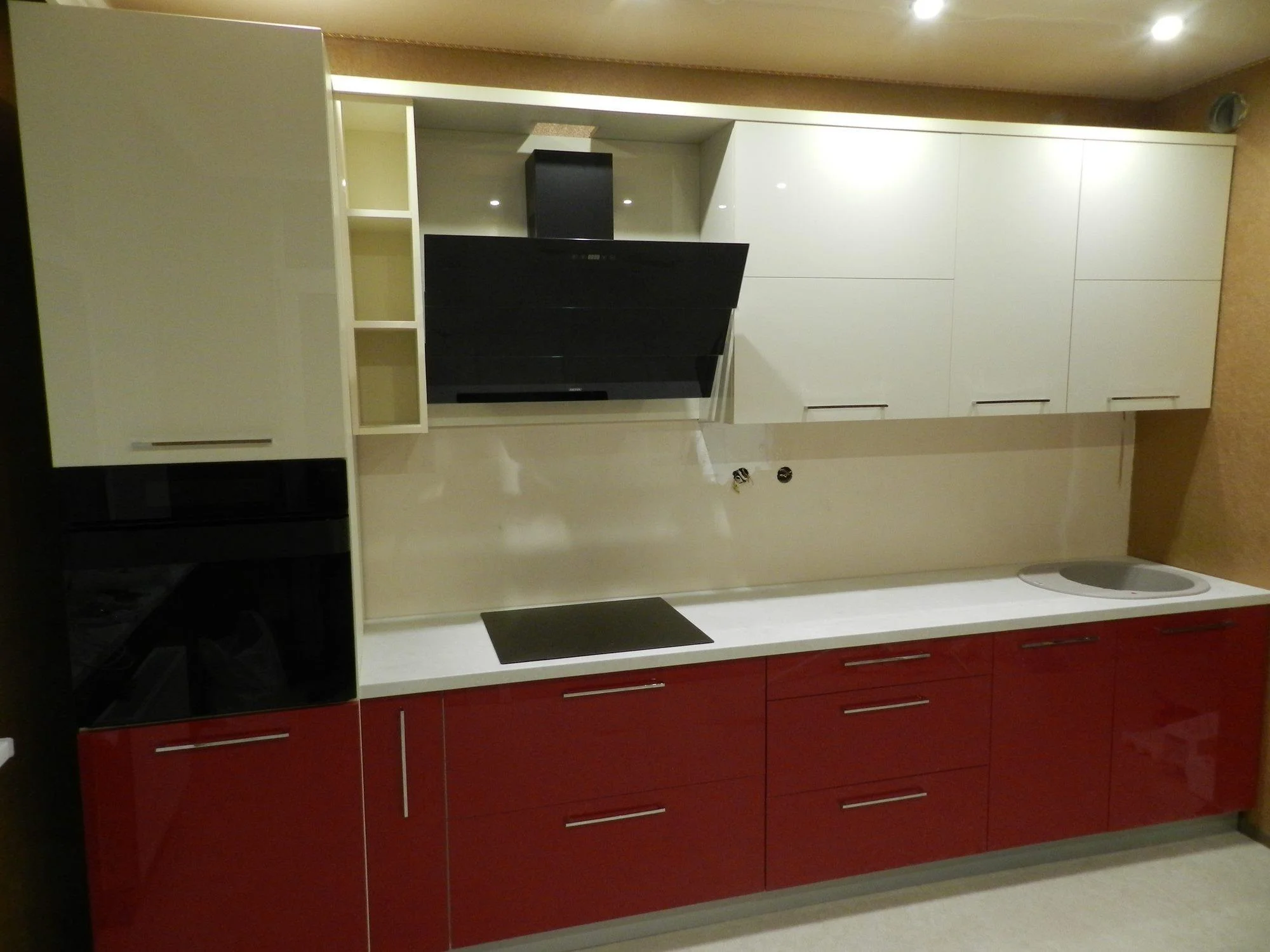Кухня Кариса выполнена в современном стиле с акцентом на чистоту линий и контраст оттенков. Глянцевые фасады в сочетании красного и бежевого создают динамичный, но уютный интерьер. Столешница из пластика под светло-серый камень подчёркивает технологичный характер кухни, а фурнитура Hettich обеспечивает долговечность и плавность в использовании.