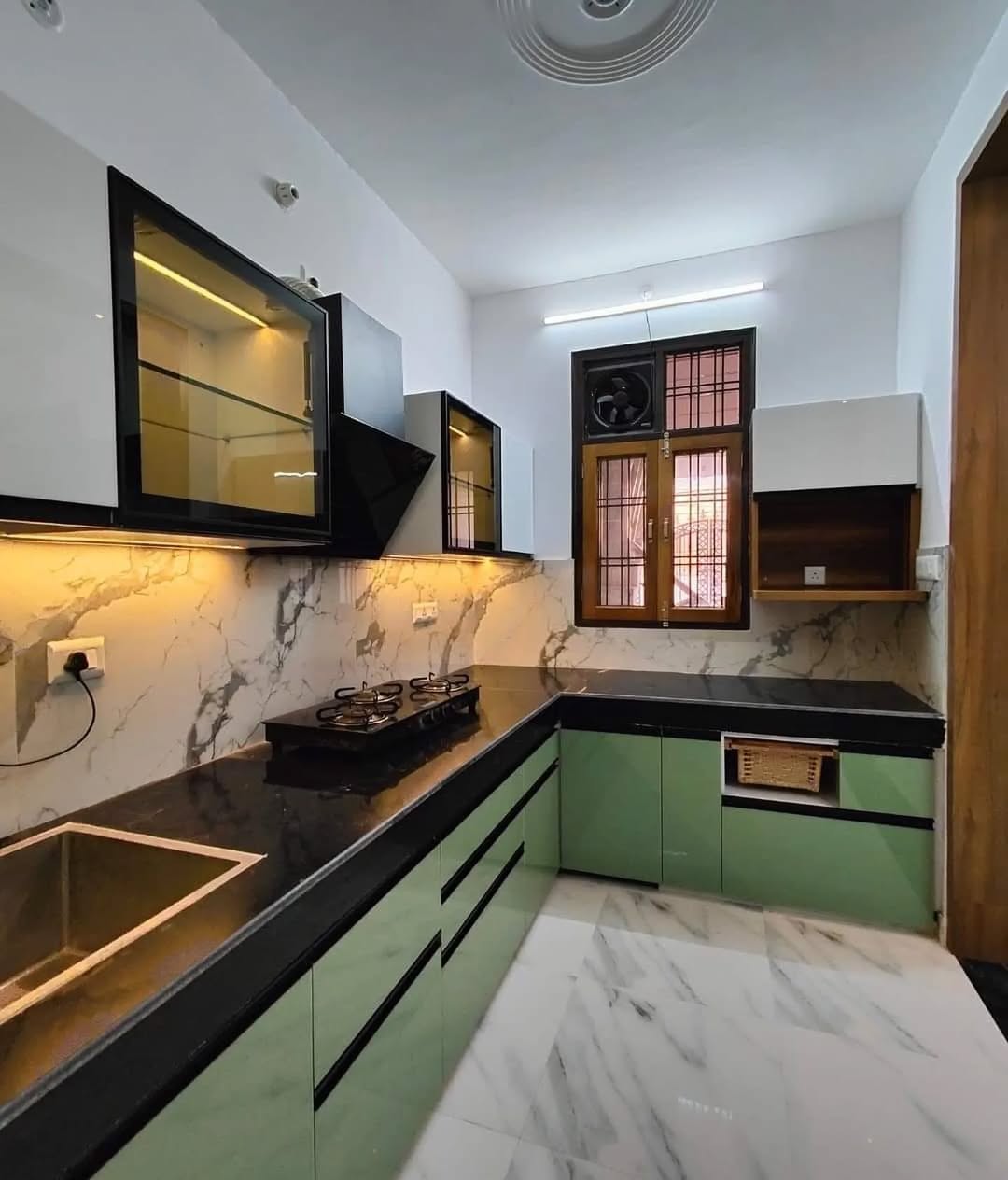 Кухня Лорин — это смелое сочетание изумрудного блеска и строгого чёрного акцента.