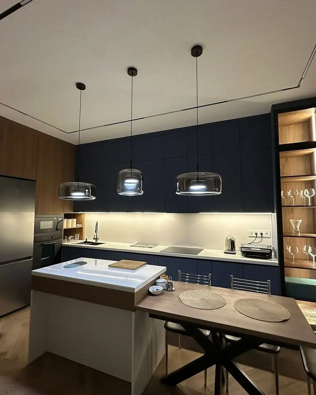 Фасады без ручек, ровные линии и подсветка создают лёгкость и визуальное пространство, идеально подходящее для современного ритма жизни.