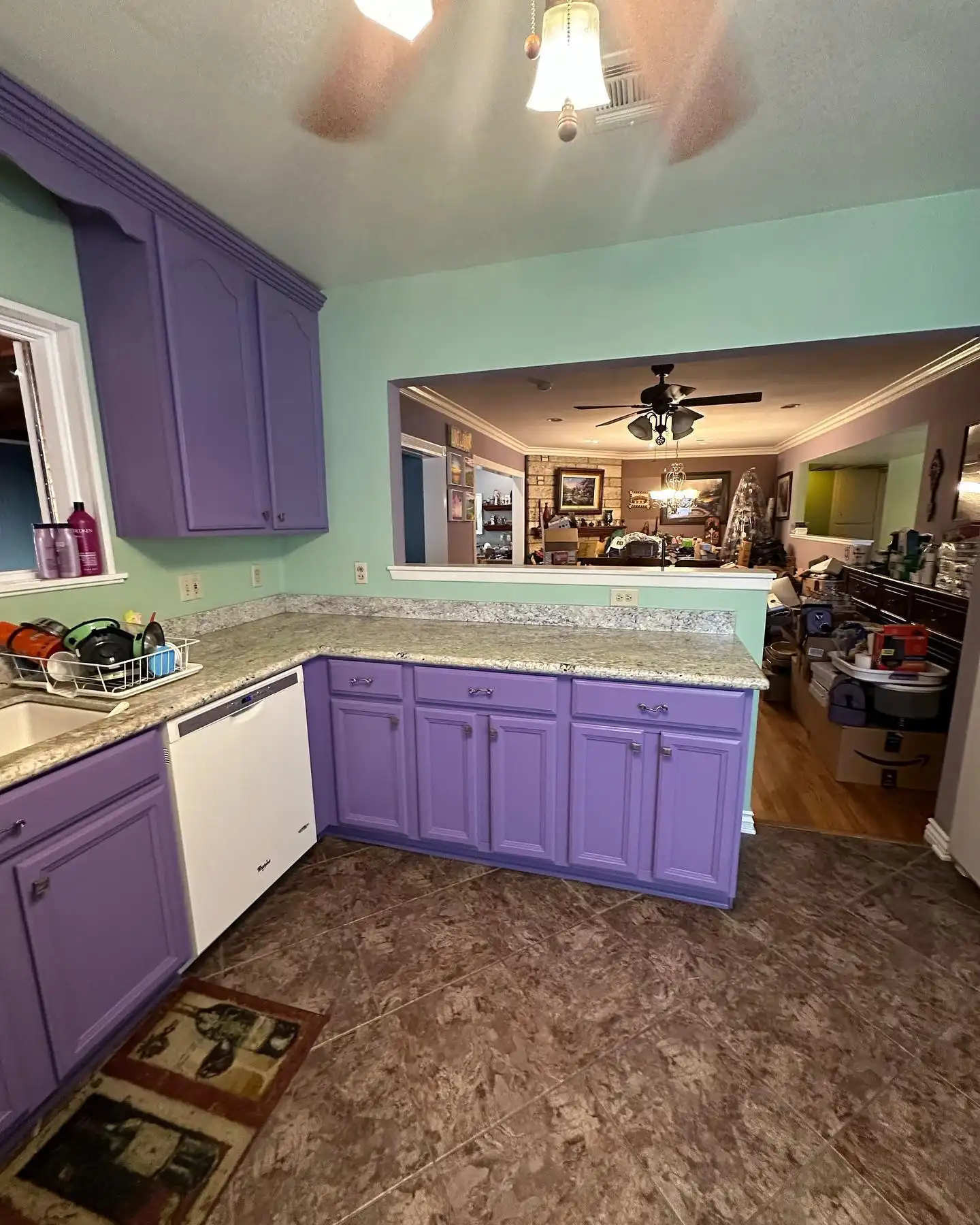 Кухня Офелия объединяет мягкий лавандовый оттенок фасадов и классический рельеф дверей. Матовая эмаль подчёркивает фактуру и придаёт интерьеру спокойную элегантность.