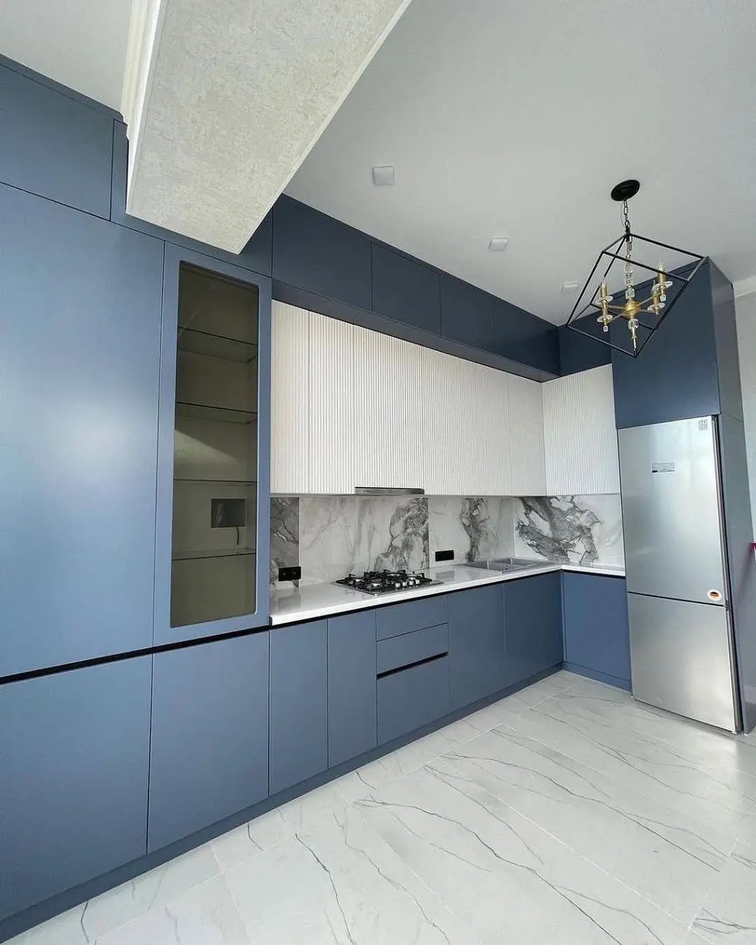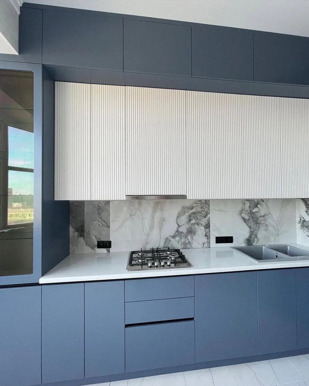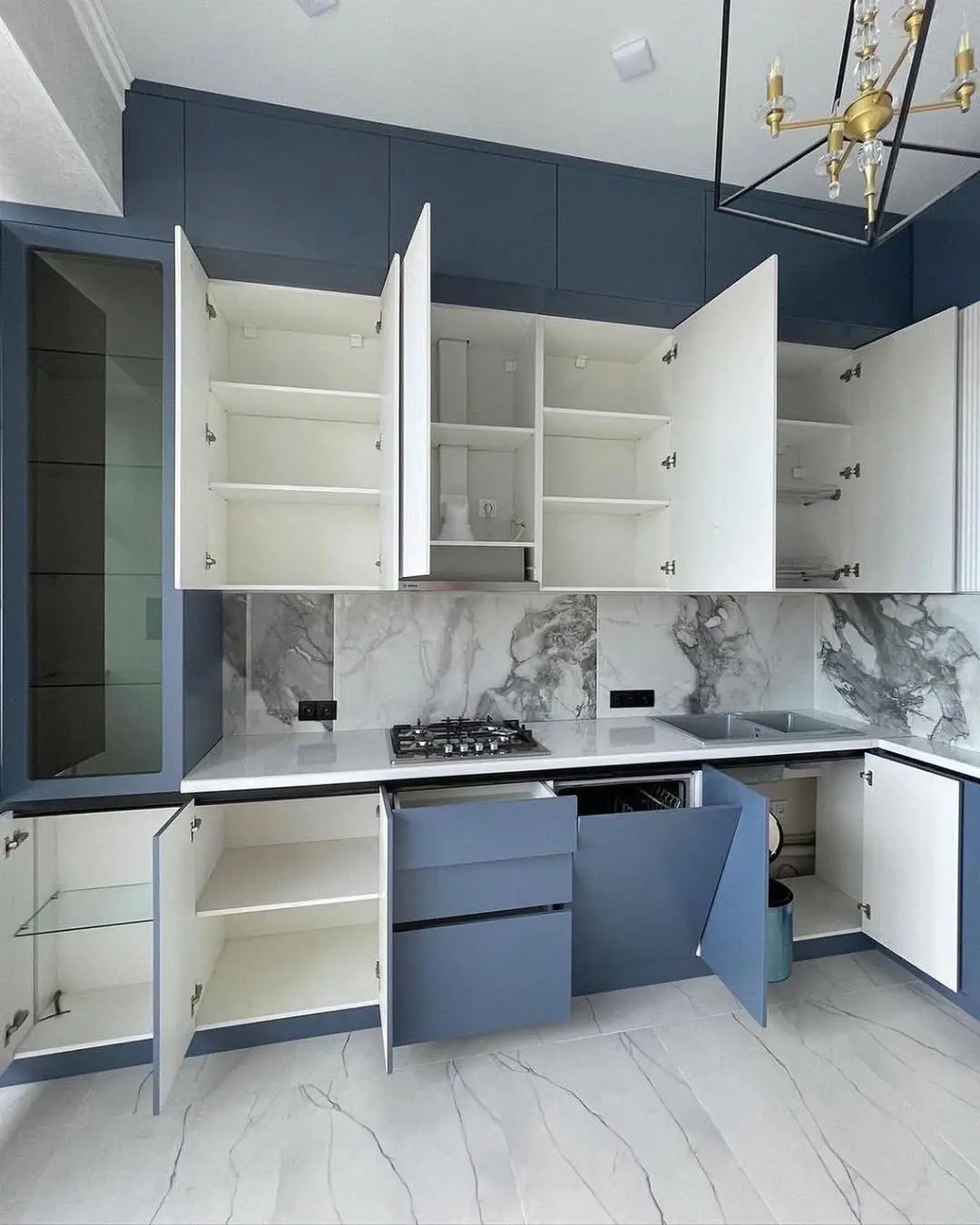 Кухня Селвия — безупречное сочетание глубокого синего и чистого белого оттенков.