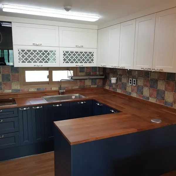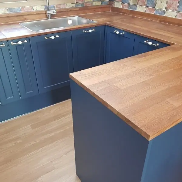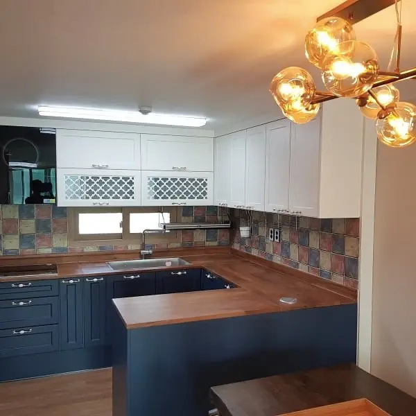 Кухня Солан — гармония морского синего и тёплого дерева.