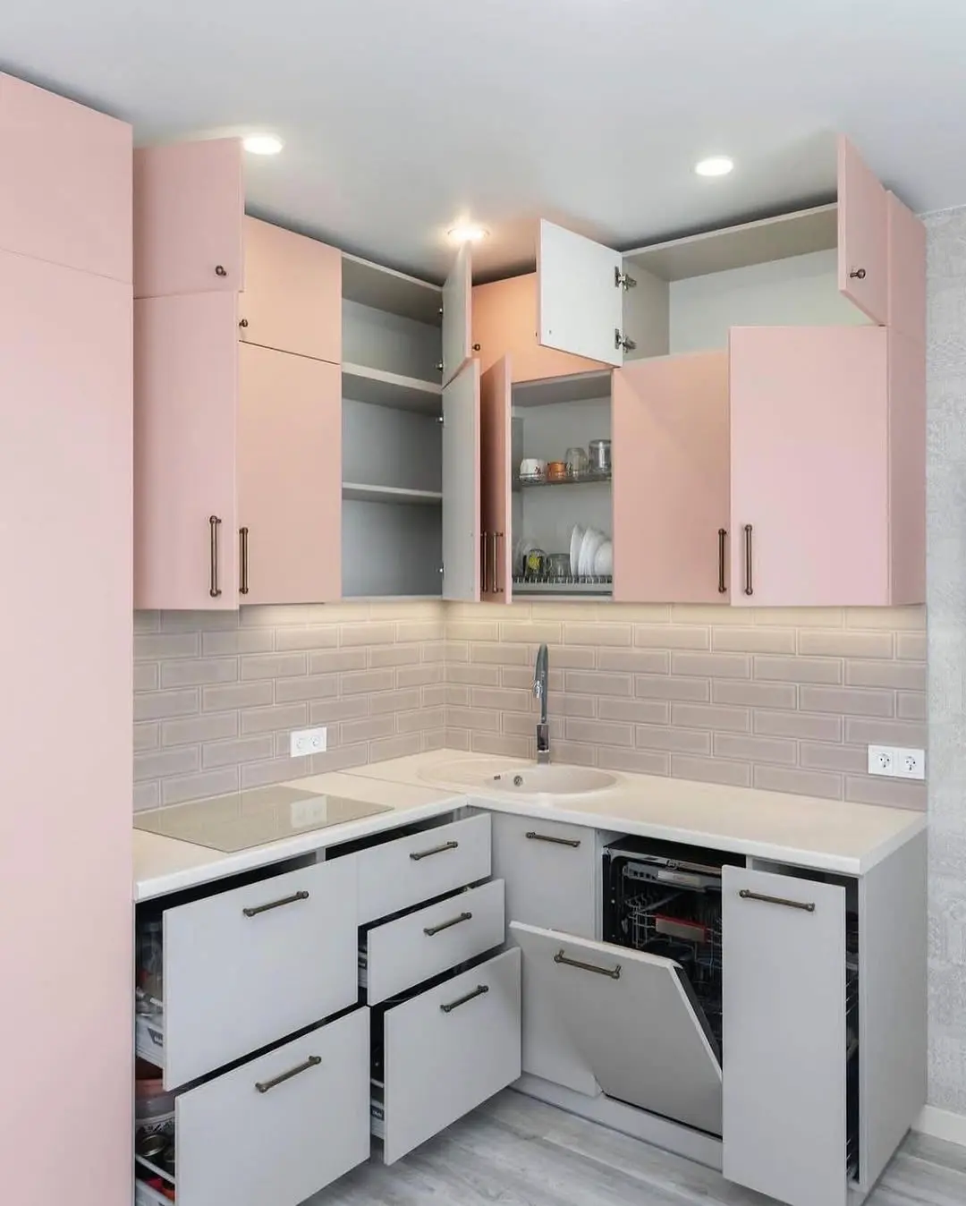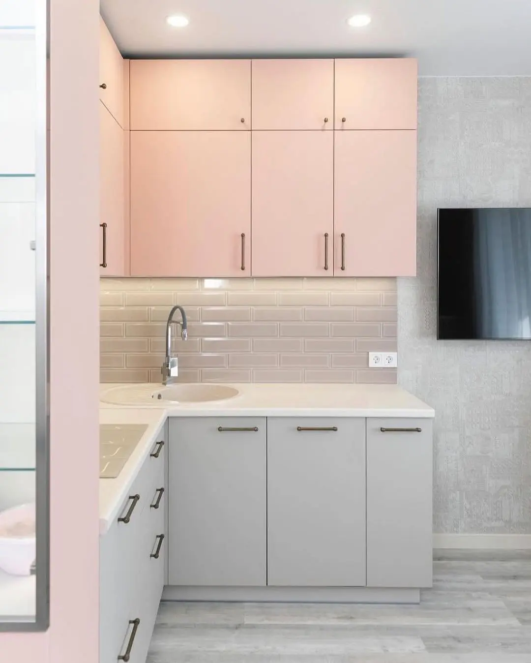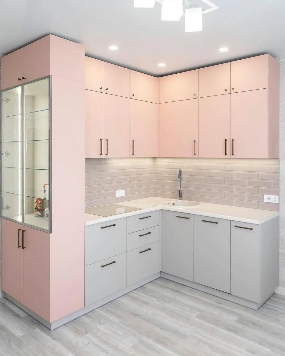 Кухня Бланш — утончённое сочетание розовых и серых фасадов в современном минималистичном стиле.
