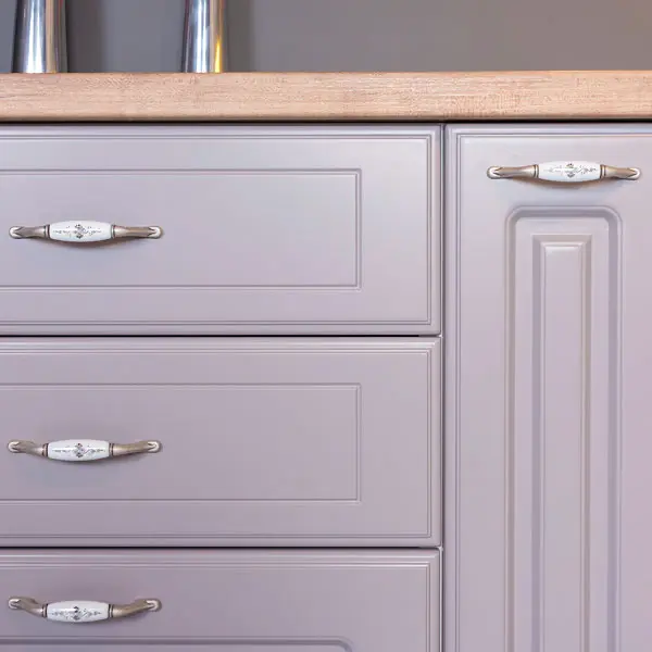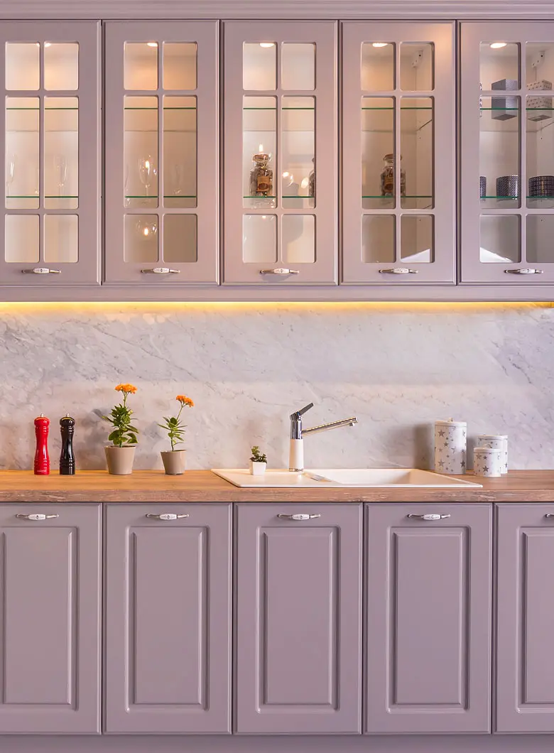 Кухня Элеонора — утончённое классическое решение в нежном лавандово-пудровом оттенке.