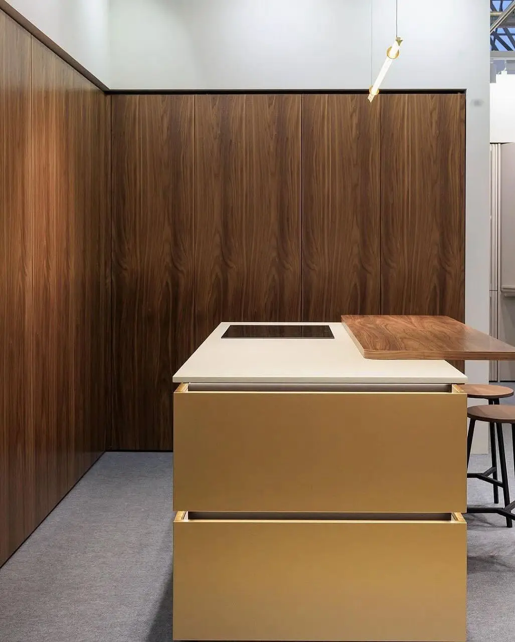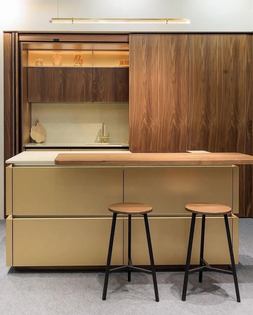 Кухня Гранада — это сочетание благородства натурального дерева и современного дизайна. Угловая планировка с функциональным островом создаёт удобное рабочее пространство и зону общения. Контраст золотистых фасадов и тёплого ореха подчёркивает премиальность интерьера, а скрытая фурнитура и мягкая подсветка добавляют элегантности.