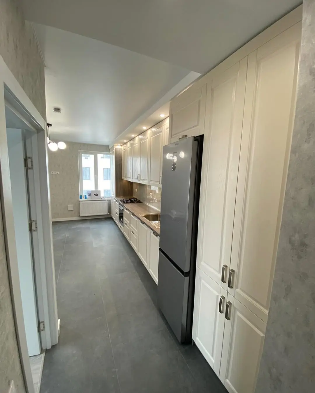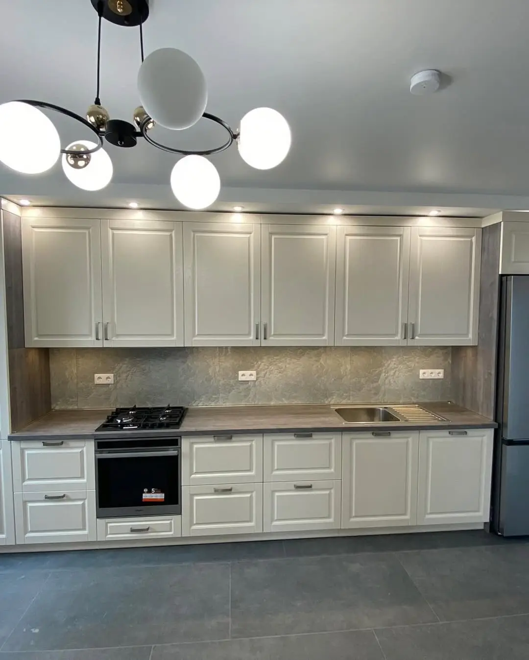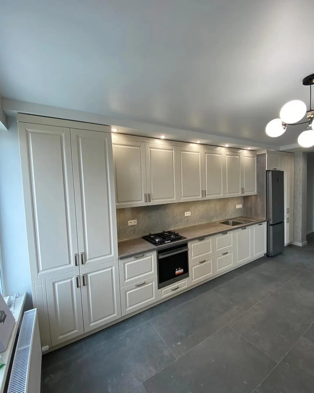 Вертикальная фрезеровка на фасадах подчёркивает современную эстетику, а матовое покрытие создаёт мягкий и дорогой визуальный эффект.