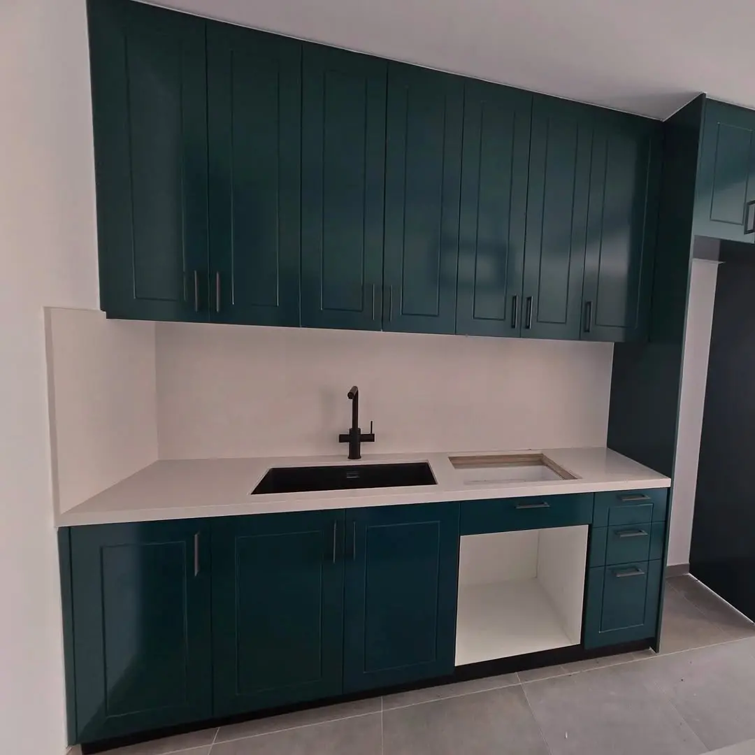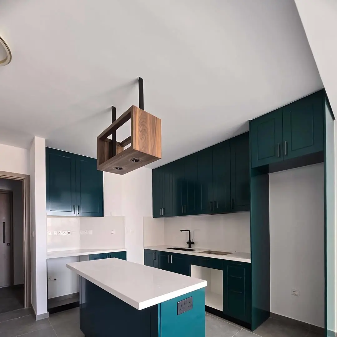 Кухня Марцелла — это сочетание насыщенного изумрудного цвета и идеальной геометрии фасадов. Белая каменная столешница создаёт выразительный контраст, подчеркивая глубину оттенка и утончённость дизайна. Фрезерованные фасады добавляют кухни характер и визуальную динамику, а продуманная эргономика делает пространство функциональным. Остров служит рабочей зоной и местом для быстрого перекуса, превращая кухню в центр дома.