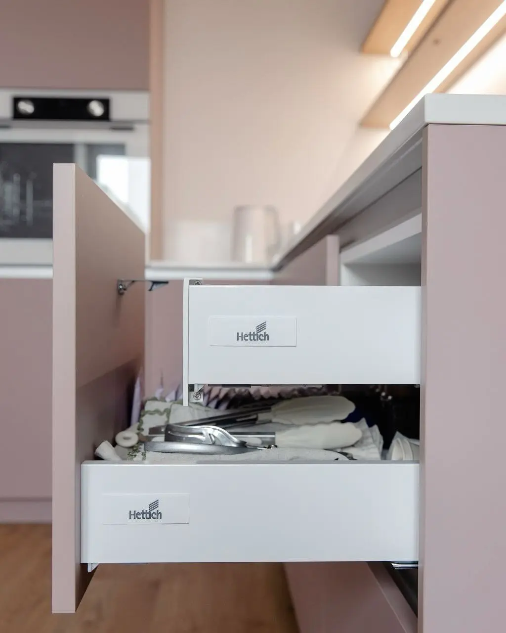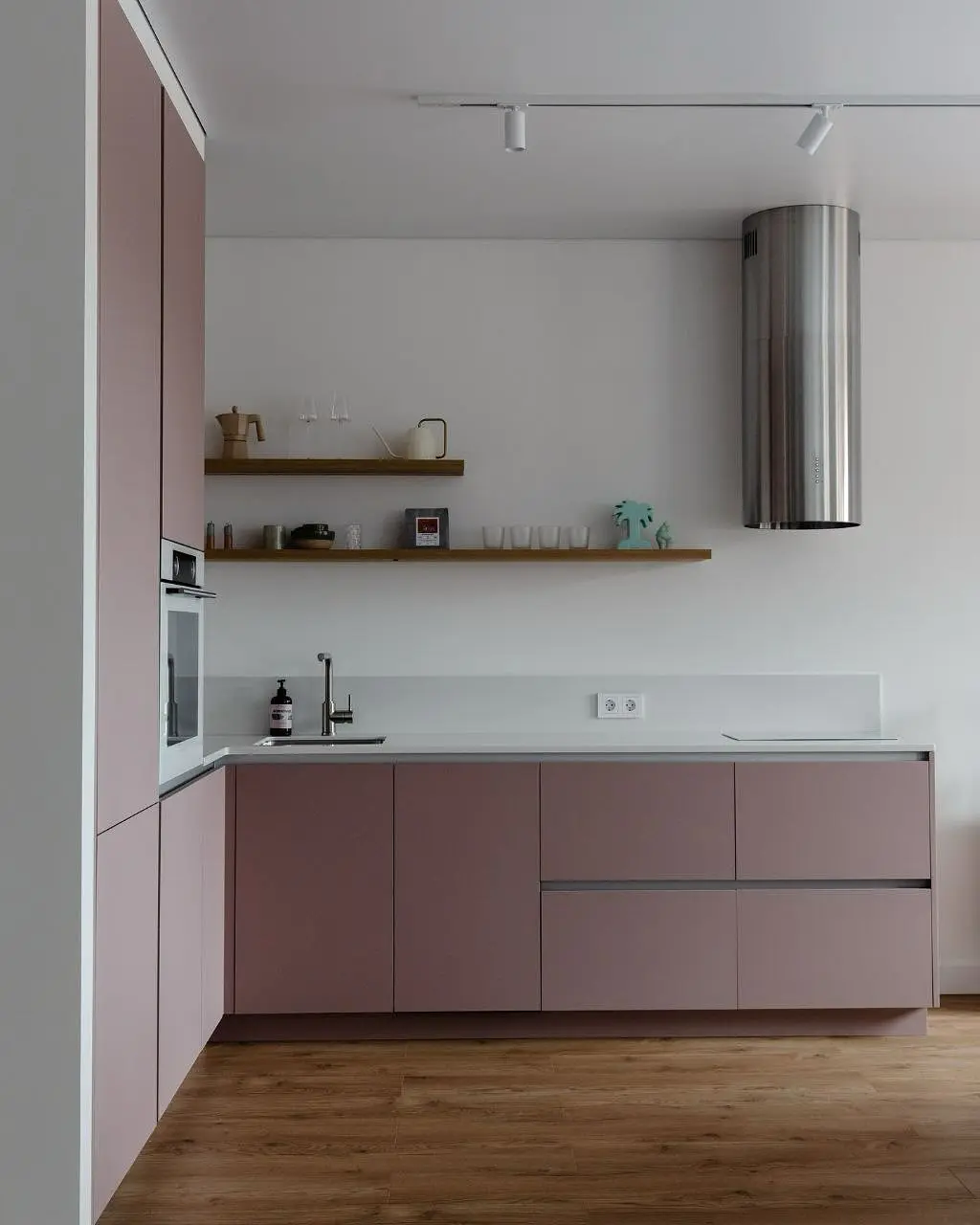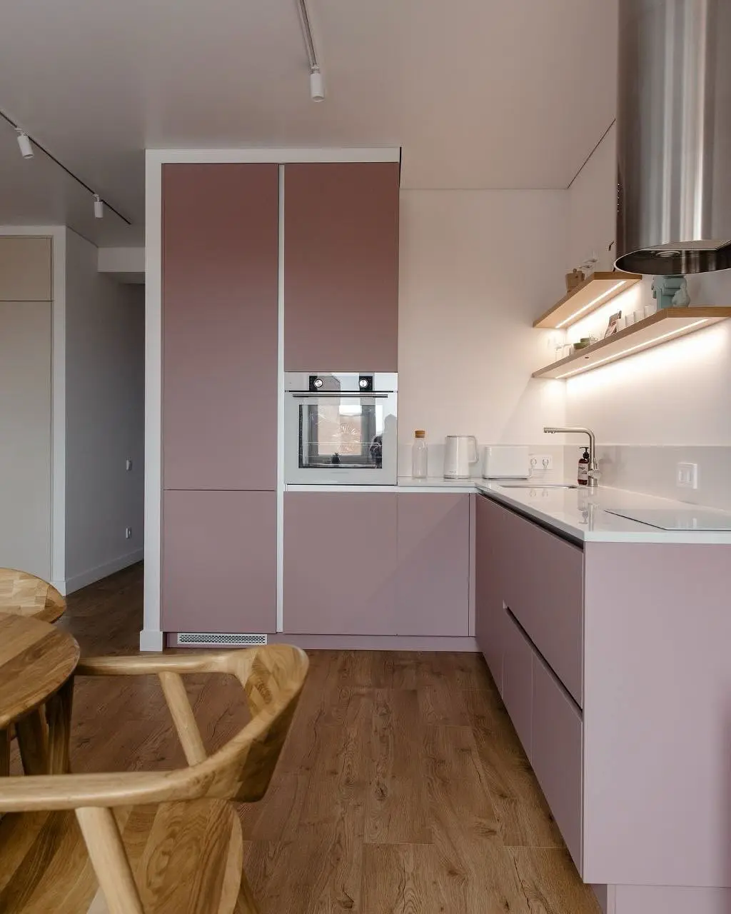 Кухня Марси сочетает в себе лаконичность и уют. Пудрово-розовые фасады в матовом исполнении создают мягкий, успокаивающий образ, а белая столешница и фартук добавляют свежести и света. Элегантная простота форм и качественная фурнитура делают кухню не только красивой, но и максимально функциональной.