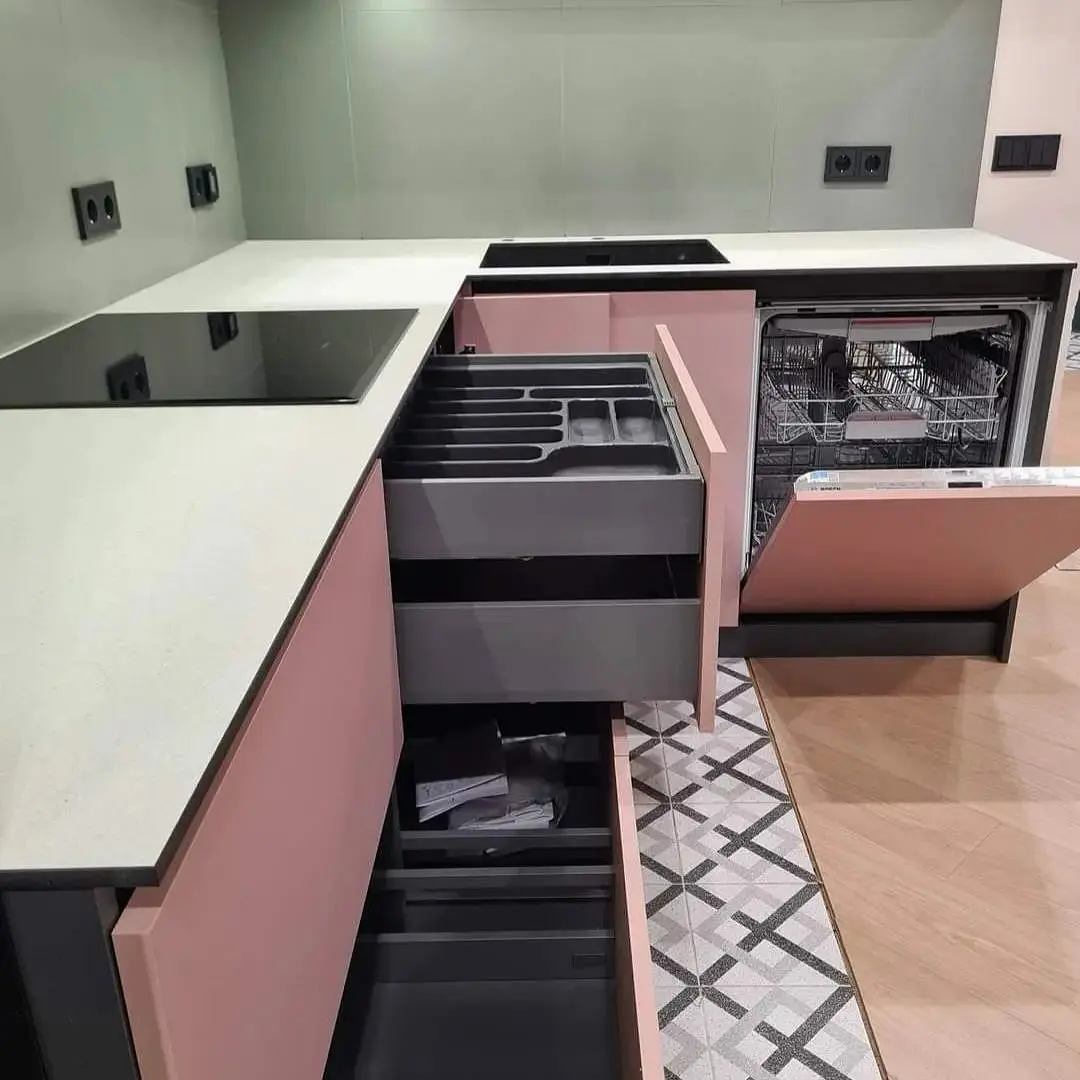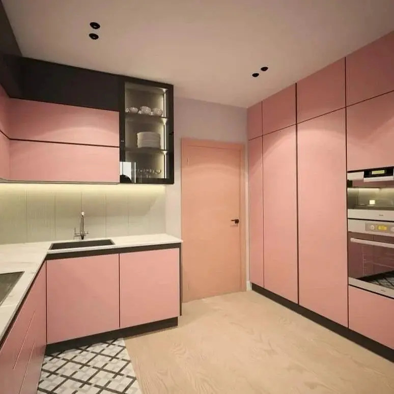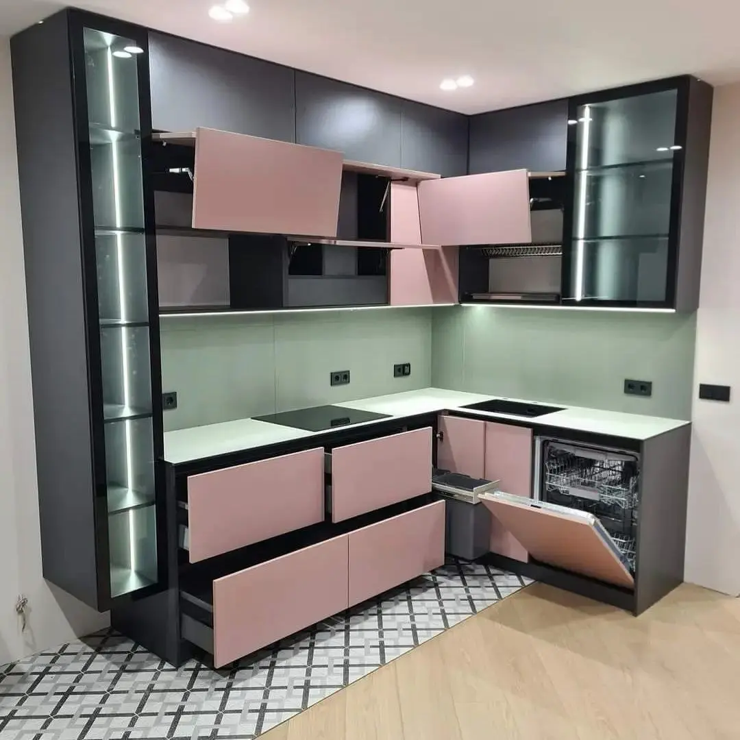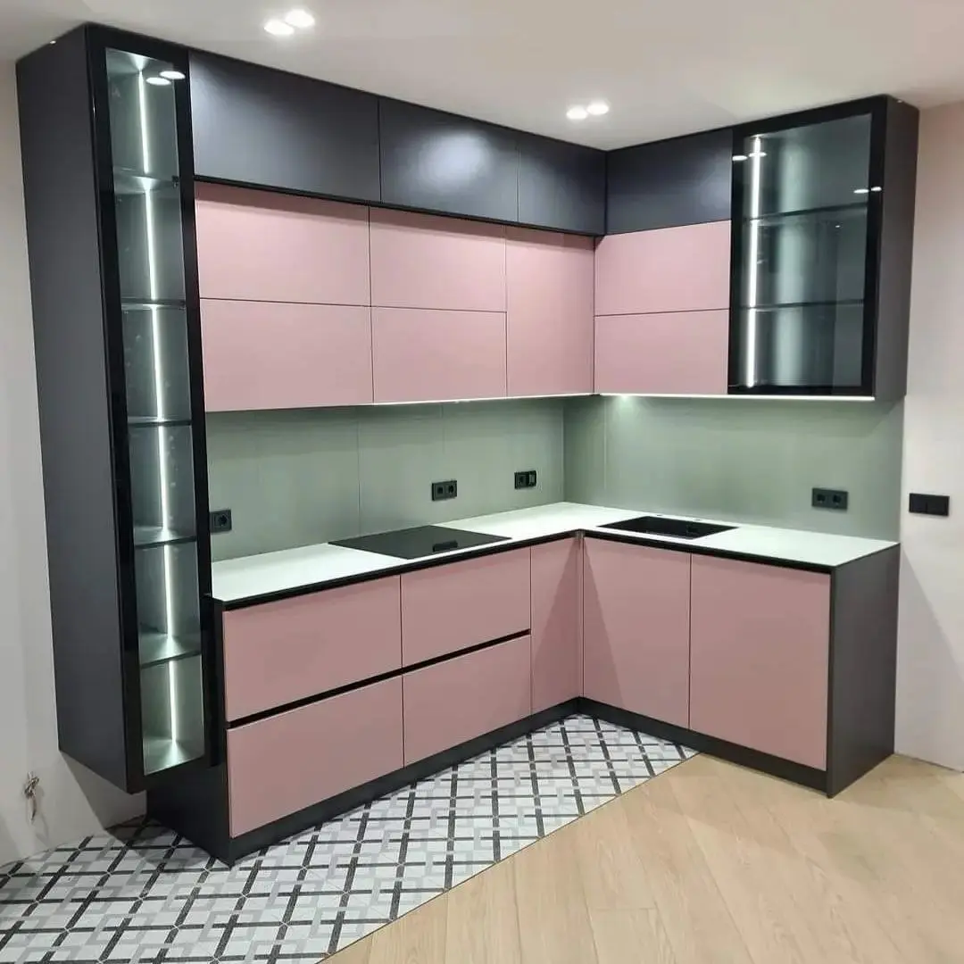 Кухня Миранда — стильное сочетание розового и чёрного, воплощающее баланс между нежностью и выразительностью. Современный дизайн с подсветкой и стеклянными витринами создаёт атмосферу уюта и утончённости. Эта кухня станет акцентом вашего интерьера и подчеркнёт ваш вкус.