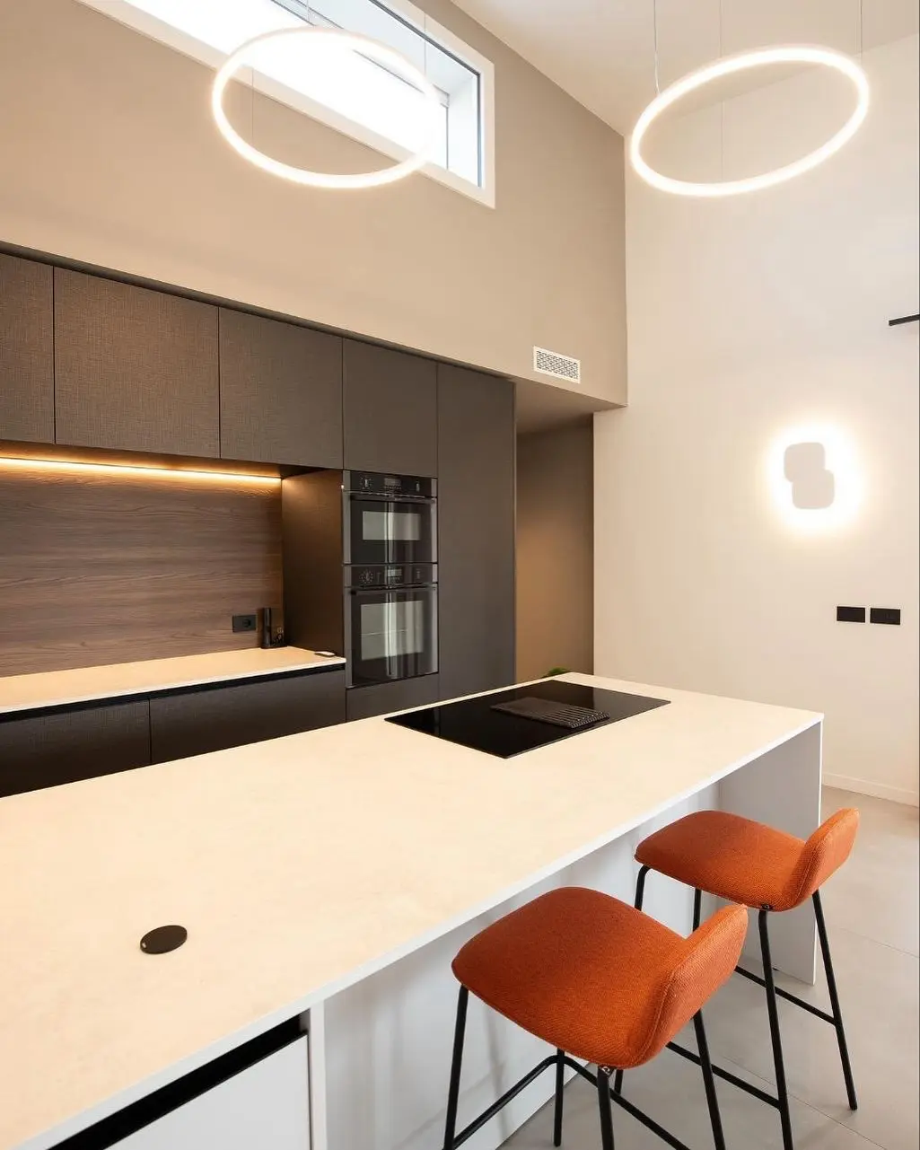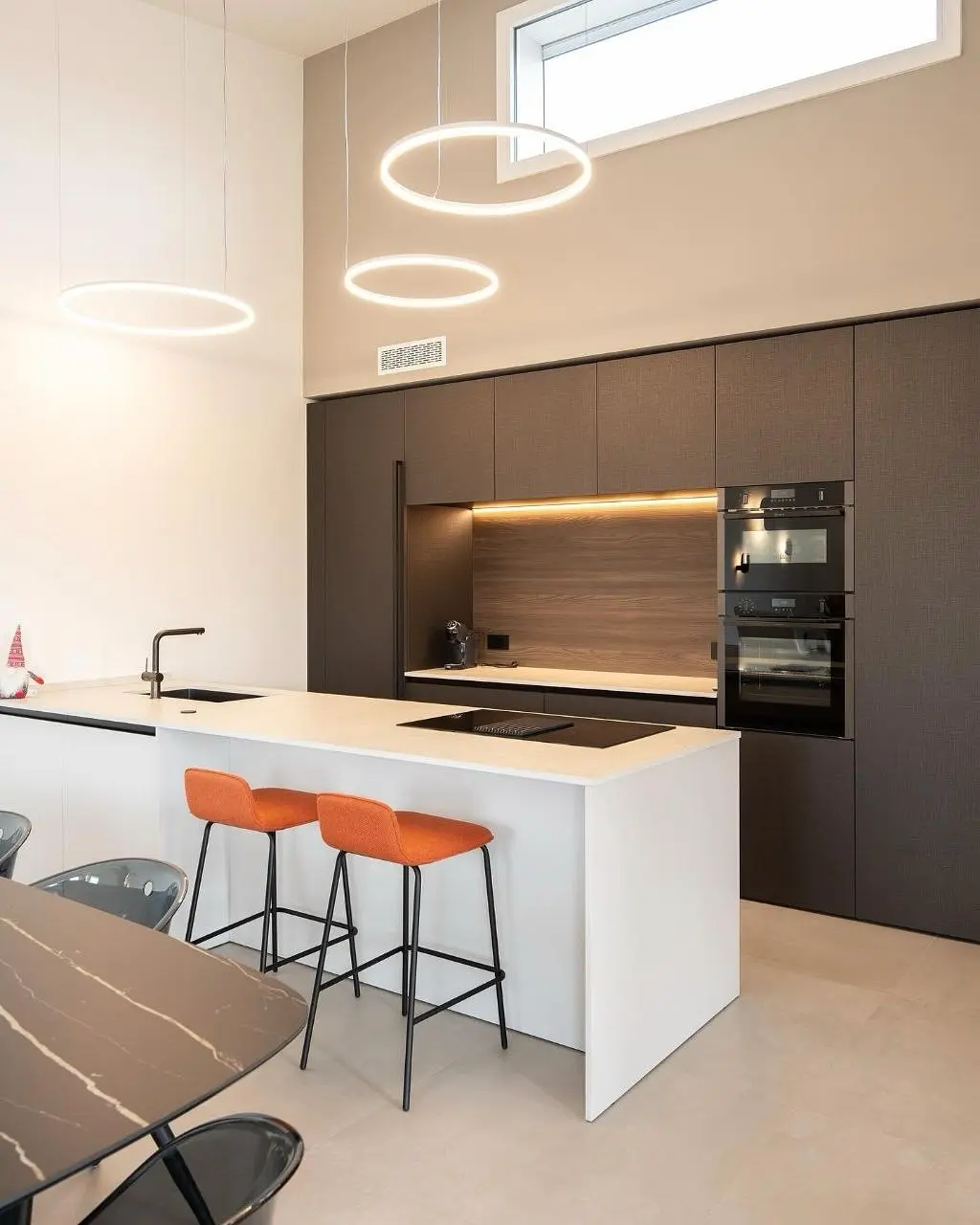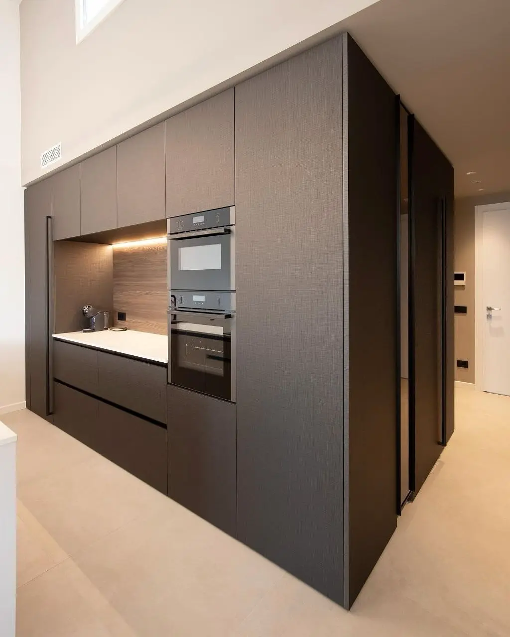 Кухня Шоко — это сочетание уюта и современного минимализма. Матовые шоколадные фасады создают атмосферу тепла, а белая столешница добавляет лёгкости и визуального простора. Благодаря продуманной планировке с островом кухня площадью 4 метра остаётся максимально функциональной и стильной.
